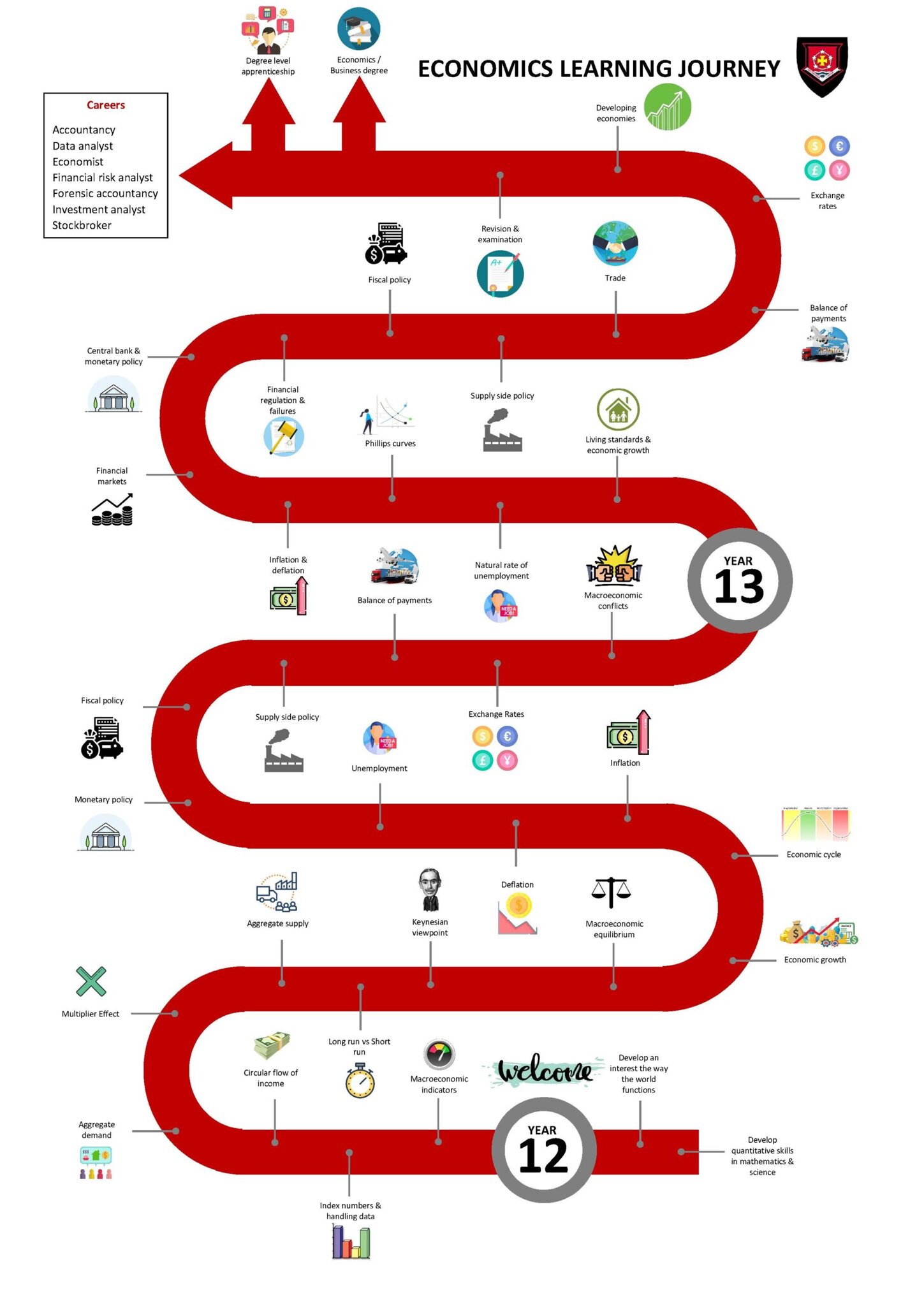 Economics is a rigorous and rewarding academic subject which is well respected by universities and employers alike. Studying Economics will help you to consider and discover when politicians are not telling the economic truth. A qualification in Economics is an excellent basis for a career in different areas. Many other subjects complement Economics, such as Mathematics, Politics, Geography, History and Science.